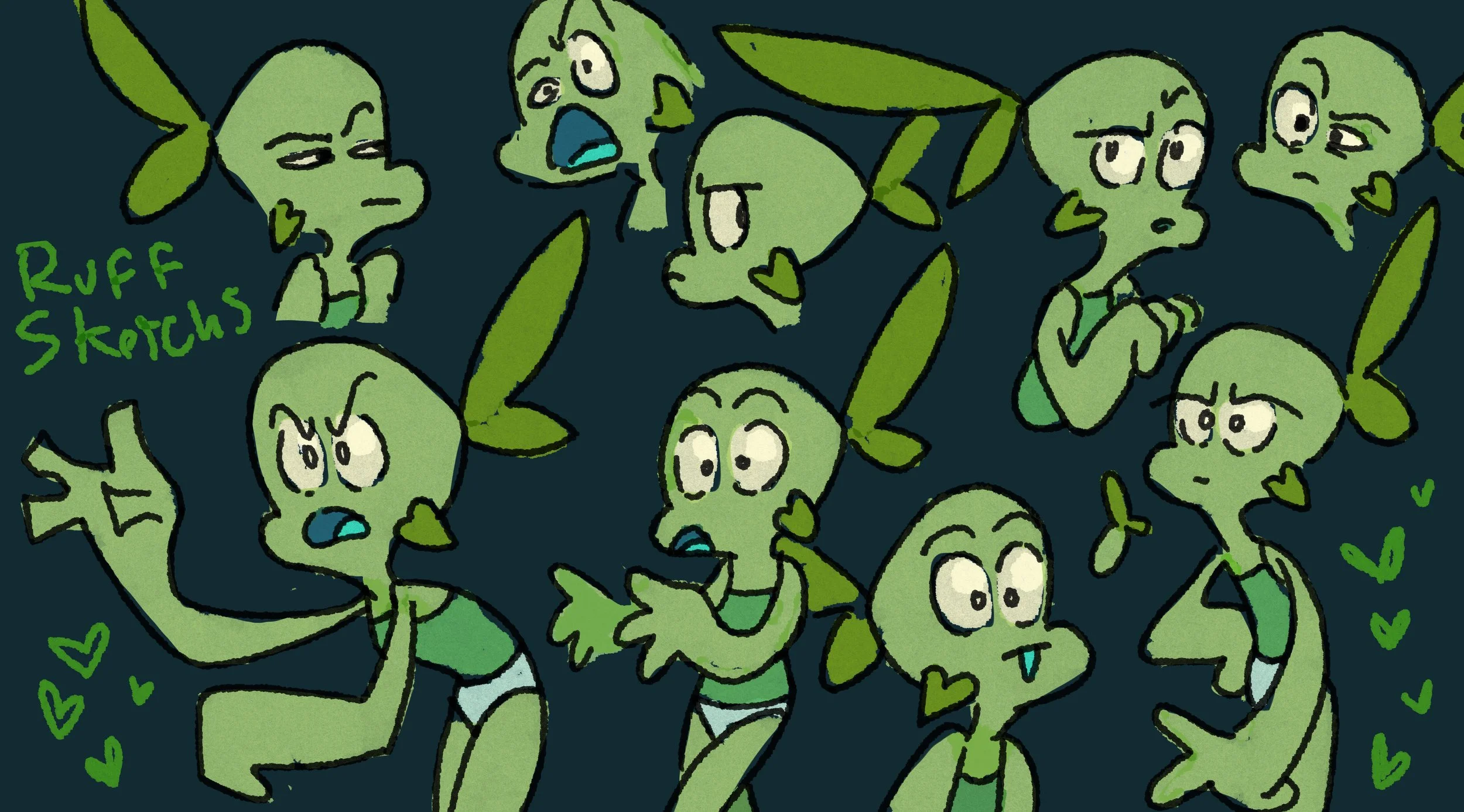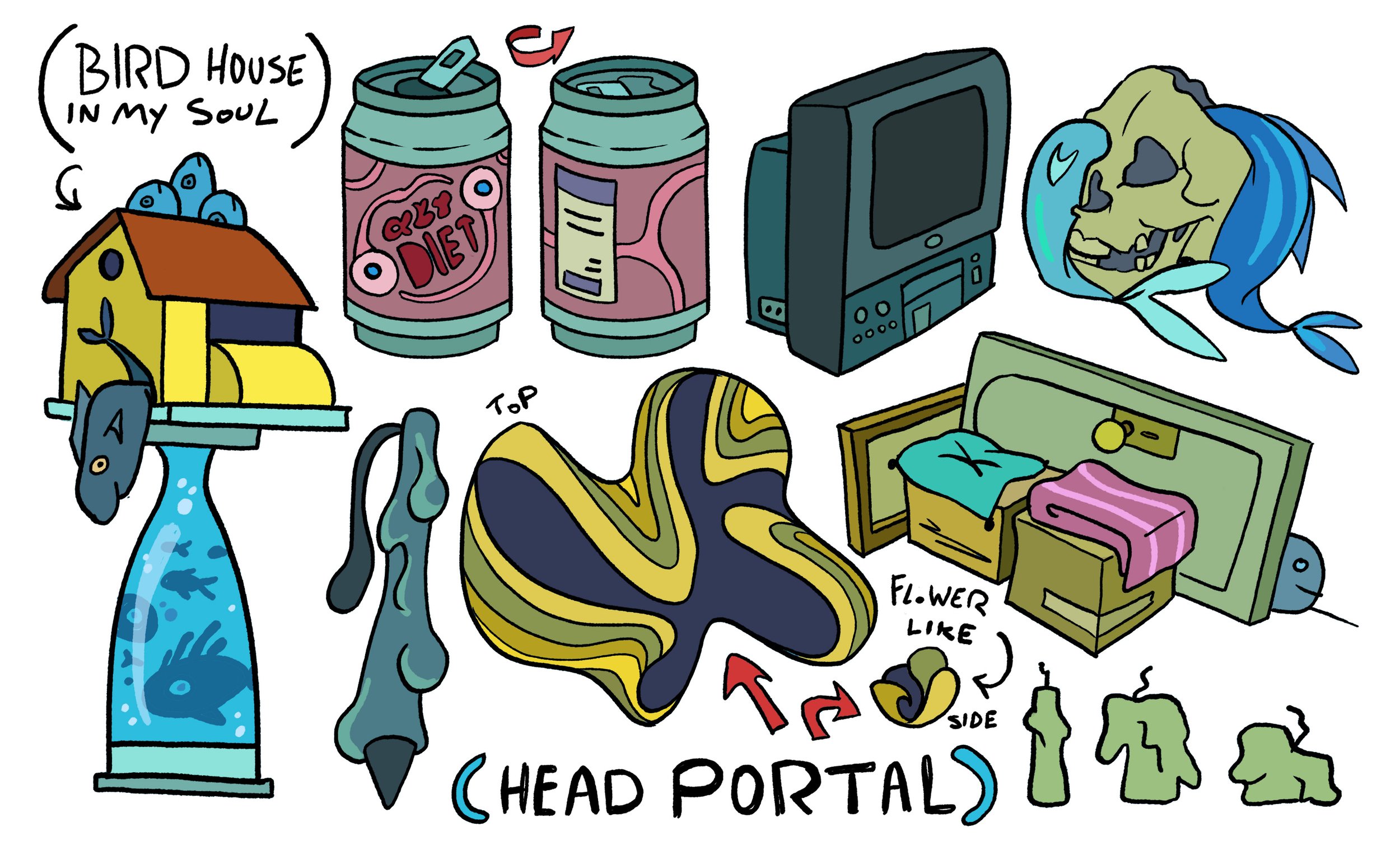 Our protagonist, here in both human and fish form. Fish hasn't been able to draw a single thing after her coma. She is tormented by the want to create but the inability to start. Thus her own emotions tear through reality to bring her inside her own head. There she learns if she wants to continue with her life she must create to survive.